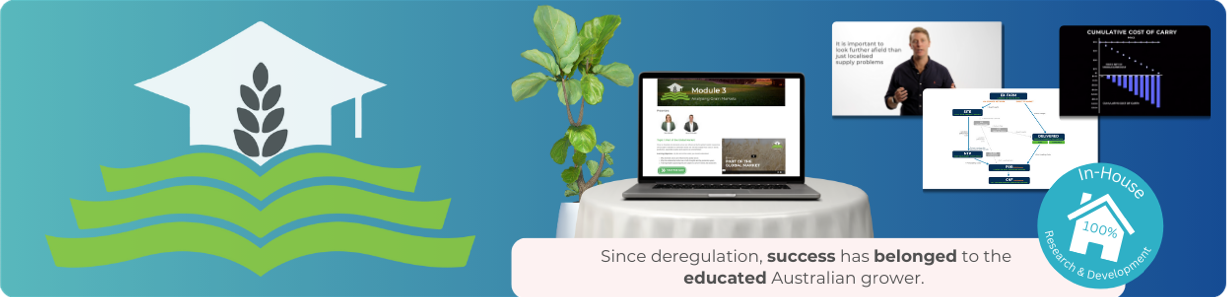 We’re excited to introduce an innovation in education for Australian grain growers, built to propel your farming businesses to success. The Academy will help you learn about all aspects of the grain markets so that you can increase your confidence when marketing your grain each year.